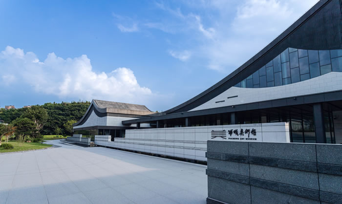 浦城美术馆/范迪安美术馆坐落于南朝诗人江淹“梦笔生花”的地方,占地面积65亩,总建筑面积3.3万平方米,是目前全国县城美术馆中面积最大、功能齐全的一座现代美术馆,既是浦城落实南平市委“打造优秀传统文化传承发展标杆”部署的创新之举,也是浦城县委、县政府打造的传承地方特色文化、发展文化创意产业的重点文旅项目。由中央美术学院副教授范尔蒴和五和都市(北京)建筑设计有限公司主持建筑师李景明担当设计。设计理念源自南宋大儒朱熹的名句“半亩方塘一鉴开,天光云影共徘徊”,建筑立面则取自南方地区传统民居,与自然山脉形成连绵起伏的天际线,充分将现代建筑与历史文脉、自然环境相融合,彰显着浓郁的中国文化特色和高雅的现代文化格调。