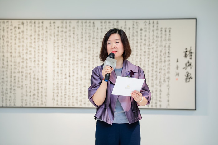 在开幕仪式上,美克国际家居用品股份有限公司总经理牟莉女士致辞,“美克美家作为一家极具代表性的生活方式经典品牌,既是经典美学的传承者也是时尚文化的探索者,一直坚持探寻跨越国界的文化与艺术形态来打造品牌的内核并持续破旧立新,在探寻途中能携手虚苑将鲁湘老师的艺术成就呈现给广大观众甚感荣幸,也希望每一位观展嘉宾都能够沉浸于混沌并在混沌中体验到内在的清宁,在混沌中看到心中所期”。