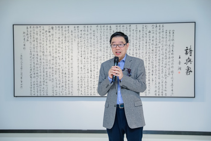 中国国家画院研究员、李可染画院理事长,此次展览的艺术家王鲁湘先生分享“这次展览的主题‘混沌有象’更是来源于1987年发表在《人民文学》‘诗与象’,没想到这篇文章写的几乎每一个字都是为40年以后这个展览而写,艺术没有对错,每一种感受都是可贵的,都是值得尊重的,因为它是你的个人经验,别人无法取代。所以,我希望走进混沌有象的所有观众,不管是学艺术的还是非艺术人士,不管你的艺术史知识量有多少,观赏艺术的经验有多少,抛掉对抽象艺术的成见,在作品面前静下来,看进去,和它产生共鸣和交流”。
