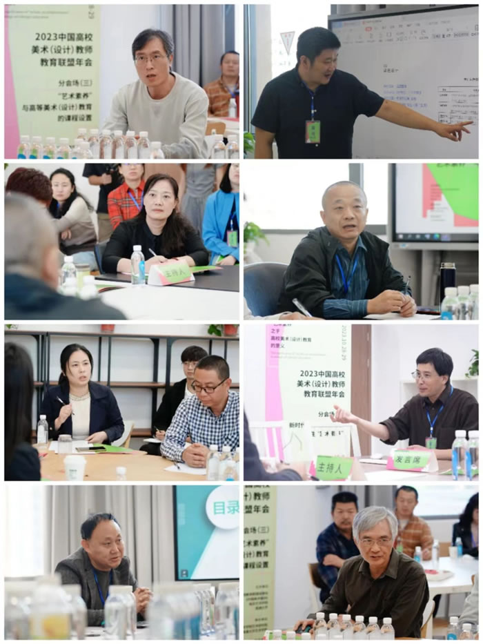 根据本次年会工作安排与工作主题,全体与会专家学者根据“新时代高等艺术教育的学生‘艺术素养’”、“‘艺术素养’与高校美术(设计)教师的素质”、“‘艺术素养’与高等美术(设计)教育的课程设置”、“‘艺术素养’与高等美术(设计)教育的教学方法”这四个议题进行分组讨论,每个组设置上下半场,分别由夏学兵、赵健、施爱芹、惠剑、徐晓庚、刘传军、陆丽娟、倪龙娇等专家主持。孙献华、顾卫国、朱亮亮、李文灵、陈巍、杨勇、崔树强、王卓然等专家对发言进行评议。