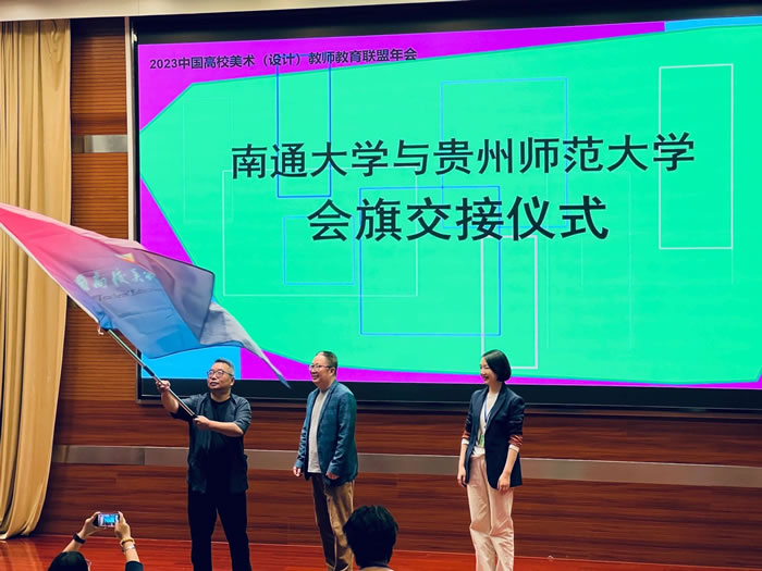 下午进行的闭幕式上,四位议题组长进行了议题研讨成果发言,南京艺术学院艺术研究院副院长翁再红主持闭幕式。南通大学艺术学院院长张卫致闭幕辞,并与顾静分别代表南通大学、贵州师范大学进行了2023、2024中国高校美术(设计)教师教育联盟年会的会旗交接。(文:童兴强;图:张煦泽 林子淳 何辰 付芊芊 朱君淳)