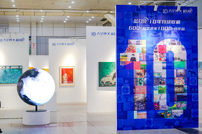 本届大艺博也特别设立“十年相伴 艺路同行”特别专区,回顾蓝月亮十年的艺术公益之路,分享蓝月亮十年收藏的艺术佳作。希望大家在观赏展品时,能感受到当代青年艺术家们的持续创新姿态,与非凡艺术魅力。此外,本届大艺博公共艺术项目「蓝色行动:来自月亮的礼物」,通过主题绘画作品征集与评选、艺术家AI共创,与作品现场展示,鼓励更多新生代,以共创的形式参与公共艺术项目,传递艺术之美,传达艺术能量。