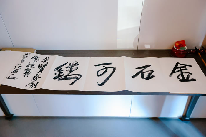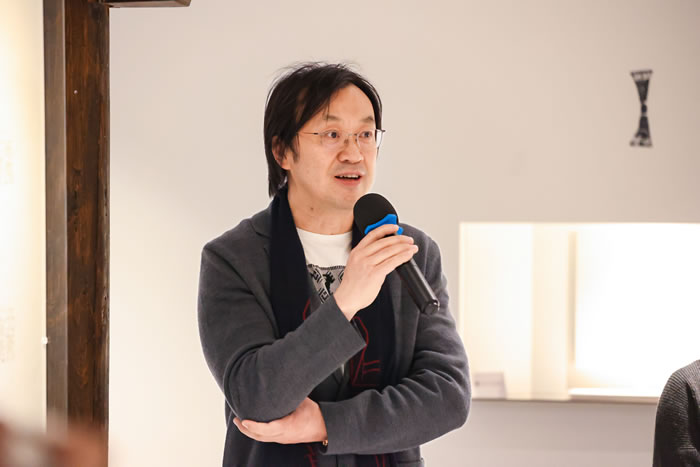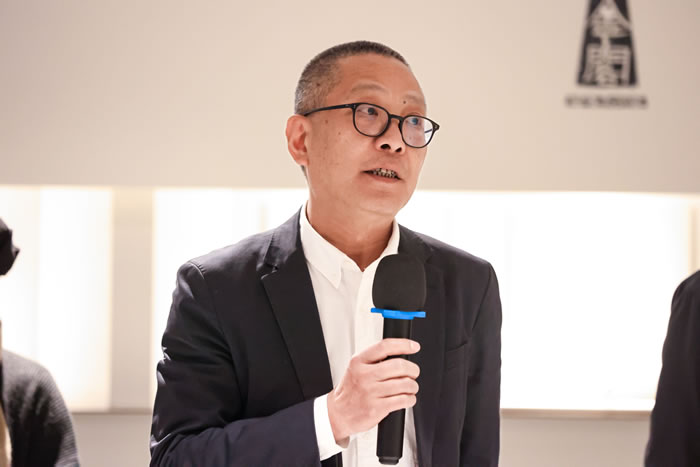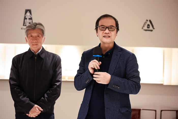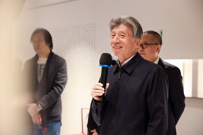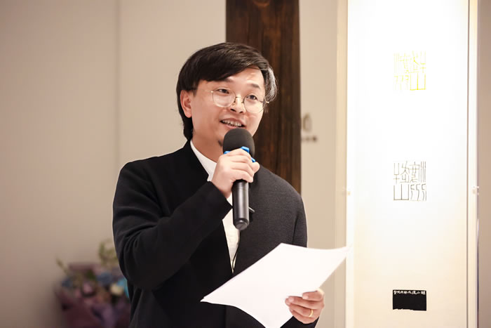 作为出品人,噫吁唏艺术馆的馆长陈晓红先生谈到他与凿度、与彭笑贤老师的一见倾情、被其作品深深打动,而彭笑贤老师也是因为看到馆长在看到那些作品时眼里有光而动容,尤其是在充分了解了空间的结构、布局、文化底蕴与其所透出同样的“金石”之气以及空间所透出的让心安住的理想诗意,让笑贤老师选择了噫吁唏。彼此的映照与契合成就了今日“凿度”之展。