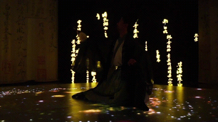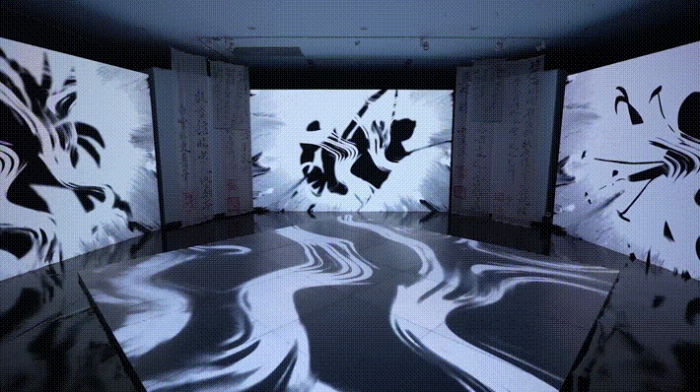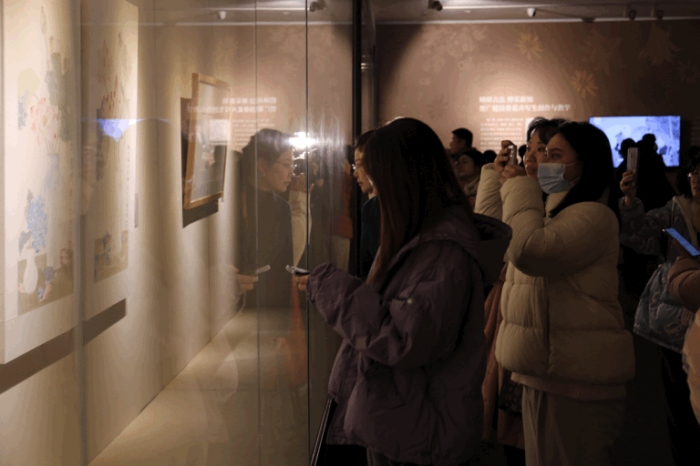 以数字媒体技术呈现的展厅内,一位舞者以恽南田为原型,在沉浸式的环境中翩然起舞,媒介融合表演,再现了昔日南田风姿。该展区突破传统美术馆空间展陈,用更具科技感和未来感的舞台影视语言,以AI动态美学、创新表演形式来打造沉浸式浸润剧场空间,观众在展厅内纷纷合影留念,表示印象深刻。