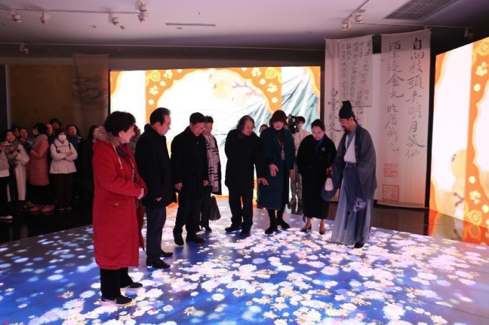 由天津美术学院影视与传媒学院戏剧影视美术设计系主任蒋旎博士带领“数字人文·未来剧场”创作团队倾心打造的沉浸式交互版块,以数字手段再现的南田“没骨花卉”的精妙绝伦,重塑中国画韵的大涵之境;以艺术与科技的当代语境,延续大运河精神,重塑中国经典文化的时代魅力。