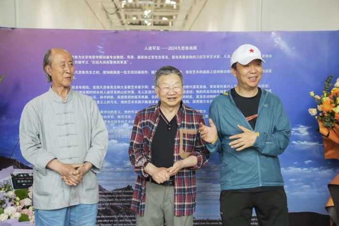 开幕式上,亦花园总经理崔相莉发表祝词,湖北美术学院影视动画教授叶佑天作为本次画展主持人,为来宾介绍凡悲鲁先生及他作品背后的故事。活动现场嘉宾云集,凡悲鲁先生的启蒙老师徐复生、北京电影学院李书安、国家一级演员藏金生、南京艺术学院传媒学院院长薛峰致祝贺辞,现场气氛热烈。