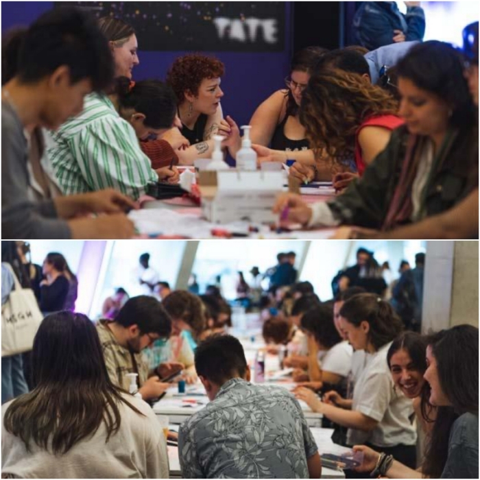 参与者可以选择与朋友一起讨论这些问题,或者自己手写和手绘下来。这种互动方式不仅鼓励了参与者之间的交流和理解,还让他们有机会以创意的方式表达自己的内心世界。这次活动不仅丰富了泰特奇妙夜活动的内容,也为“她的世界”项目提供了新的视角和素材,使其能在不同的场合和环境中继续发展。