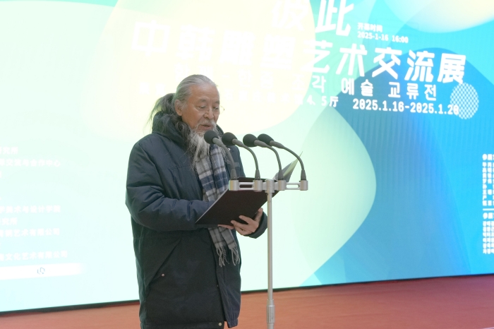河北省美术家协会副主席、河北师范大学美术与设计学院院长崔强在致辞中说到,文化是民族灵魂,雕塑艺术更是文化内涵的容器。中韩两国地缘相近、文化相亲,雕塑艺术既共有东方古韵,又因不同历史轨迹各具风采。在当代,两国雕塑艺术更是蓬勃发展,不断探索创新边界。此次交流展意义非凡,对艺术家而言,这是汲取多元养分的契机;对民众而言,是不出国门领略东亚文化魅力的窗口。对艺术教育而言,它为学院师生打开国际视野大门。