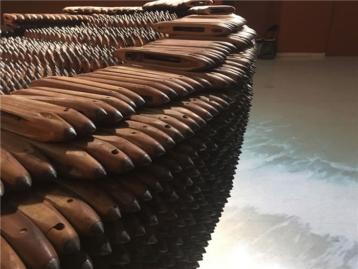 他善于使用综合材料,如《无花之境》《乱披麻》结合不同材质质感,丰富作品表现形式和视觉效果,增强感染力。《忒修斯之船》用废弃织布梭子拼装船体,《纸上谈兵》集视频、雕塑和装置于一体,展现高超驾驭能力。他擅长驾驭创作媒介与绘画语言,线条被赋予情感与思想,运用色彩巧妙营造氛围。