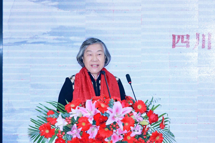 四川省诗书画院院长秦玉琴宣布展览开幕