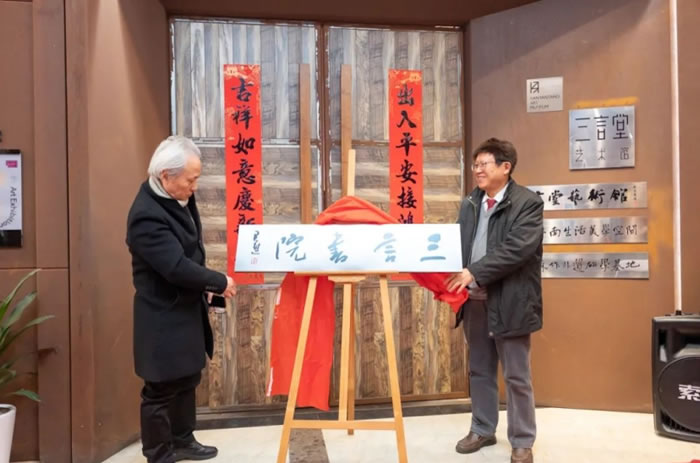 随后“三言书院”中国传统文化推广基地、苏州大学中国近代文哲研究所楹联创研中心活动基地、明德草健康驿站中医药文化传承基地、“三言堂”道家养生功法研习基地也相继揭牌。揭牌仪式后,又为10位嘉宾颁发了三言堂艺术馆顾问聘书,分别是周矩敏、柯继承、王坤泉、韩光浩、秦怀宇、尼克、余嘉、顾斌、周发兴、王兵。