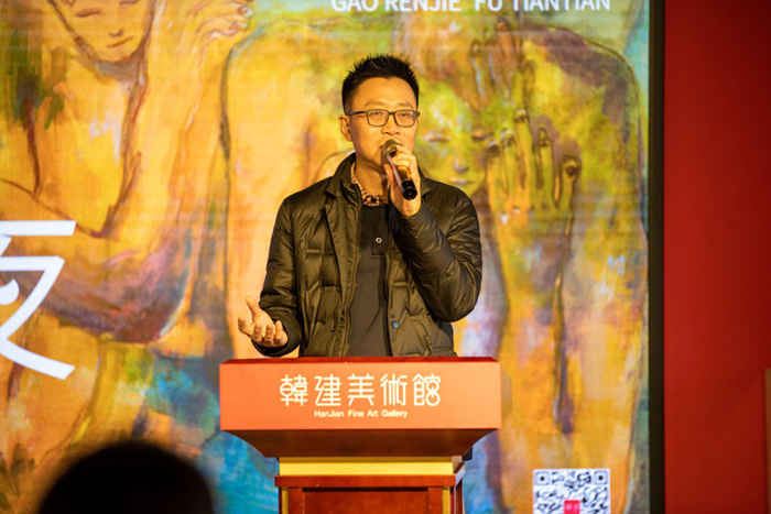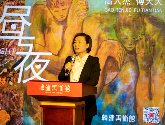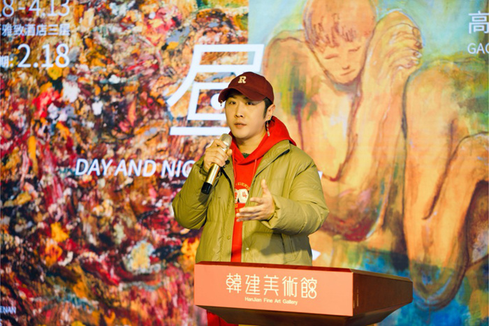 画廊主李征先生表示,非常开心在2月18日来到韩建美术馆,与大家共同见证傅天天和高人杰“昼与夜”展览的盛大开幕。作为艺术市场的资深从业者,我代表当代艺术市场从业者,感谢韩建美术馆。正是因为有它,当代艺术才能在北京房山,也就是北京最西南面生根发芽。希望更多有美学追求的企业加入,让我们一起发现美、发展美、感谢美、拥抱美。