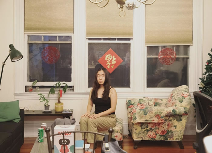 A:对,该作品就是我对这种现象的回应。我特意选取一个中国过年的场景,有窗花,也充满了一些国外人眼中应有的“中国元素”,但是我选择的模特非常严肃地坐在那里对视着镜头。我希望她坚定的眼神呈现出一种对抗的力量,那是“外国人眼中的亚裔”和真正的亚裔的对峙。我们不想只作为一个他者彰显自己所信手拈来的谈资,我们希望的是真正被看到和理解。