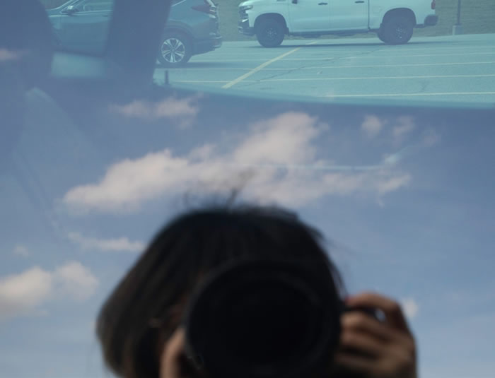 Q: 对,因为我在你的作品中看到很多图像都是经过反射进行呈现的,比如折叠的反光塑料、利用汽车表面车漆或车窗的反射,或者利用镜面和曲折的弧面进行图像的处理,为什么会选择这种方式?