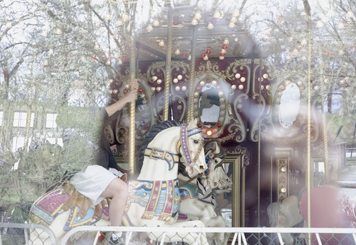 A: 是的,有时候眼睛直达的未必就是“真实”本身,“真实”是一个多维度的综合判断,比如加入语境、情绪、时间限定等等。就像《When I Be Hold(凝视之时)》这件作品,我拍摄的是朋友隔着玻璃骑旋转木马的景象,但其实我也将自己的反射叠加到镜头之上。就正如同作品题目一样,我制造了镜头两段叙事的重叠:一遍是正在拍摄的自己,一边是镜头对准的旋转木马,我把自身投射到客体之上,对面是快乐的旋转乐园,而在这一边的我,则感受到影像后的冷清和孤单。
