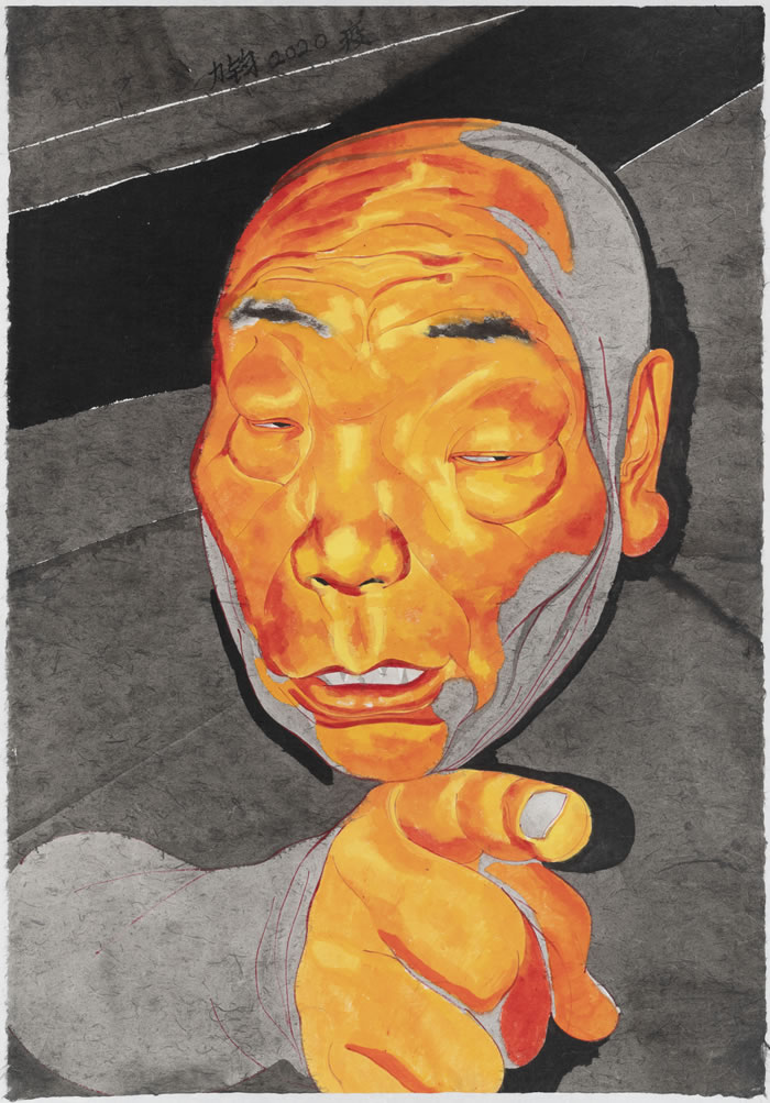 方力钧-《杜坚兄酒酣》,90x61cm,纸本水墨,2020年