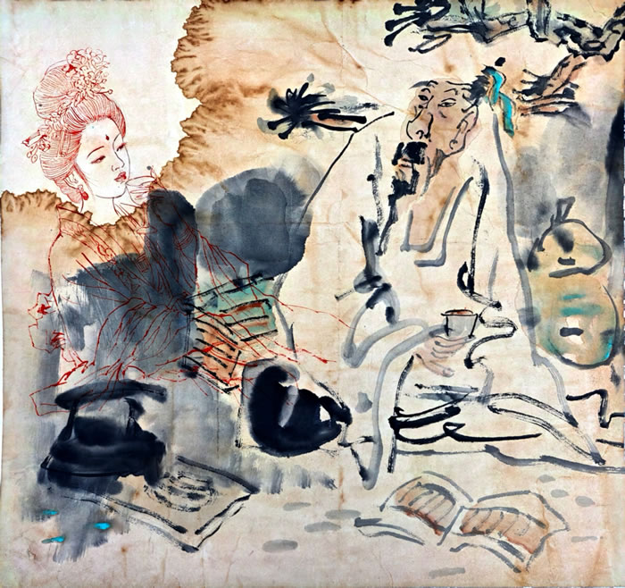 李津-《饮食男女》,39x22.8cm,纸本水墨,2024年