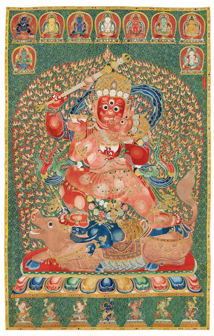 明永乐 御制红阎摩敌刺绣唐卡长335.3厘米,宽213.4厘米