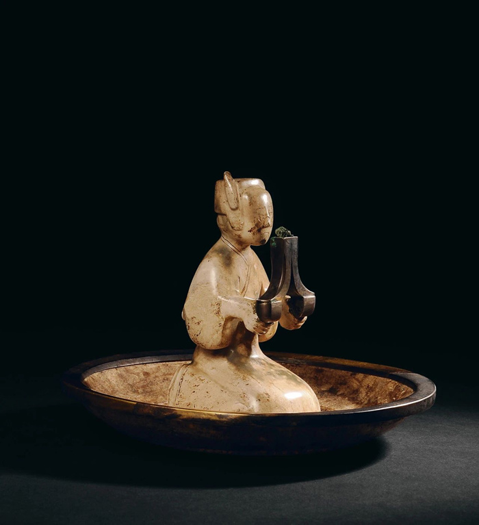 汉 跽坐吏玉灯、盘(两件)高8.5厘米,直径12.3厘米