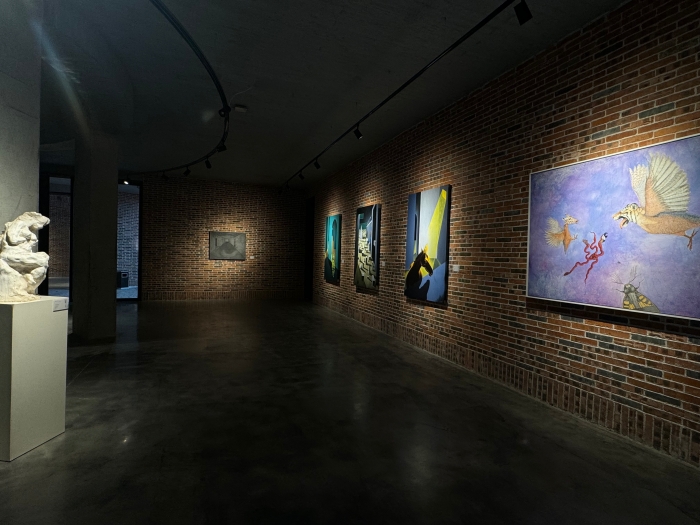本次展览分为四大板块,涵盖绘画、雕塑、装置、影像等媒介,参展艺术家以独特视角诠释“融新@生长”主题。德籍艺术家黄佳通过跨文化拼贴,在画布上编织东西方美学对话;新加坡艺术家杰里米·希亚以版画的形式呈现科技实验与哲学思考,展现社会批判性;泰国艺术家程广峰则以简洁形式暗藏深层线索,引发观者无限遐想。