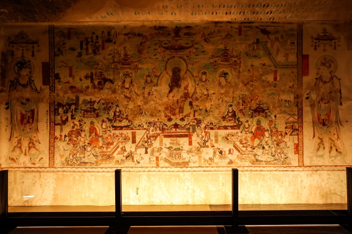 榆林窟中唐第25窟:被誉为“敦煌石窟艺术之冠”,窟内绘制的大型壁画观无量寿经变精致至极,表现佛国世界的富足美好,为敦煌壁画的代表作之一。