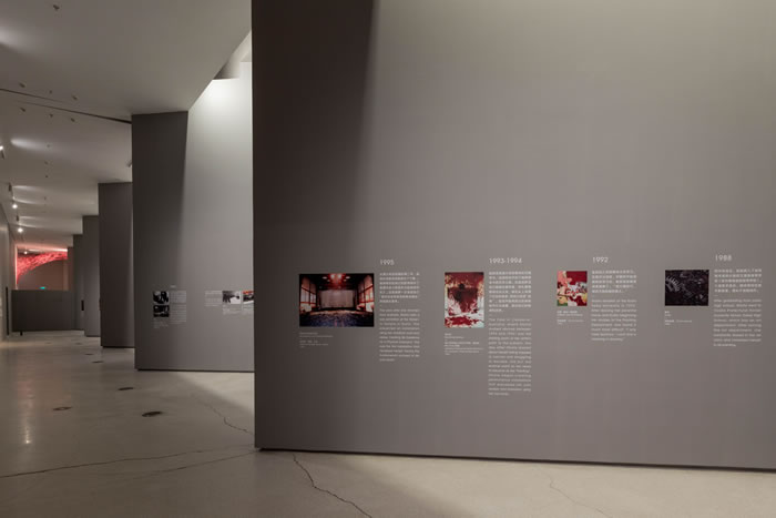 值得一提的是,展览还通过文献图片、影像资料等内容系统梳理了盐田千春的艺术实践与创作历程——作为日本人,她赴澳洲交换学习,从此突破对油画表达方式的困境与沮丧,开启了身体创作的行为之路;后赴德国,师从阿布拉莫维奇与瑞贝卡·霍恩,一步一步走入全球当代艺术视野,走向沉浸式的大型空间装置。而始终不变的,是艺术家对跨国身份的自我认同与思考,对肉身与灵魂、现实与虚无、生死与永恒的持续追问。而在这一自我输出和疗愈过程中,盐田千春也在叩问着观者: