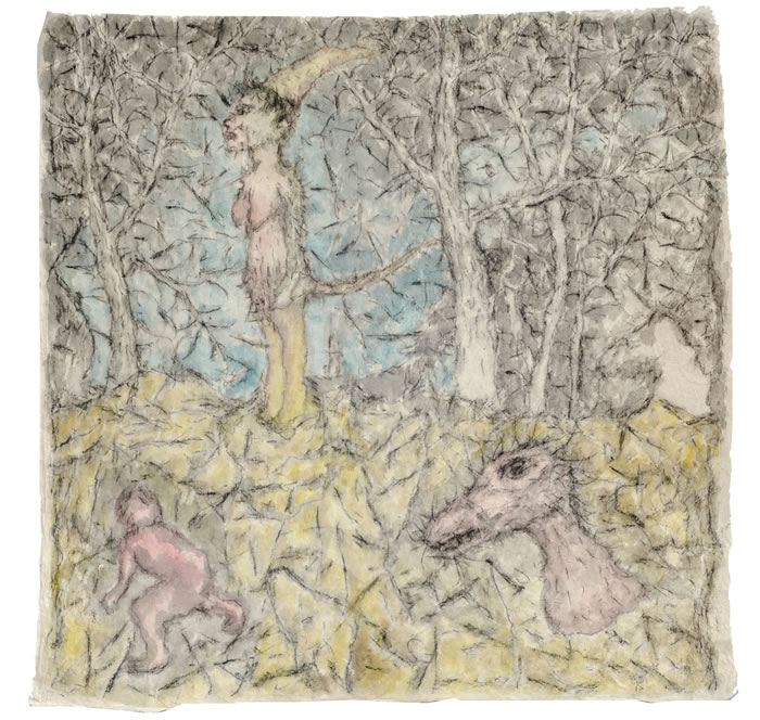 李:2013年我只画了一幅大作品,这幅《丛林》是我生完孩子第一年画的,也是从这幅作品开始,我不断反思碳笔系列的作品接下来该怎么画的问题。2009年到2013年几年专注的碳笔创作,年轻时那股鲁莽和冲动已经慢慢被消磨,取而代之是一种更加内敛、包容和静谧的力量,特别是孩子的到来,所有的一切都变得温暖了。