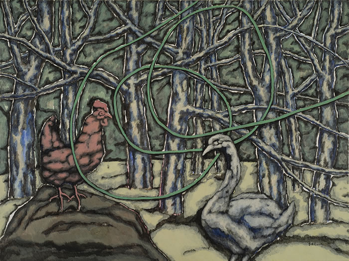 确实,某一段时间中,“留白”是我一直在强调的,但我不想让它变成我的符号和标签,我希望更自由的去处理画面。留白不是必须的,我希望自己不会受制于任何形式上的东西,就像前几年“丛林”系列里的线条,它来了,我接纳它,但不是必须得有它。