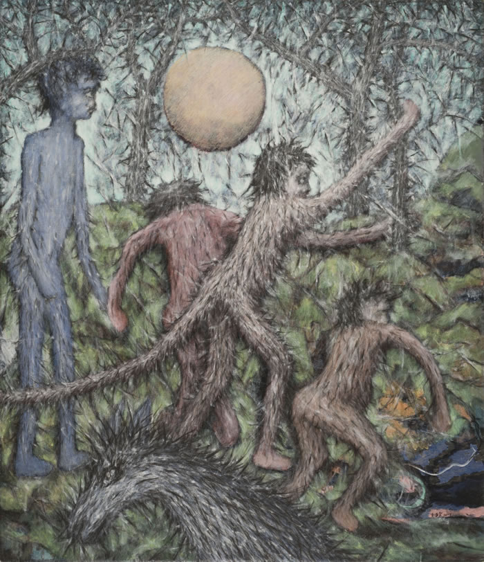 丛林 布面丙烯碳笔 150X250cm 2013年