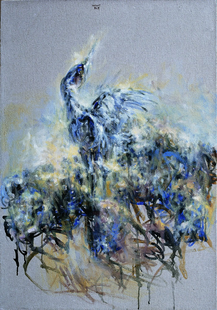梁:能感觉到从这幅作品开始,你的思考更具内向化,从画面中可以看到你一直在思考,并解决一些问题,而且解决得很成功。你的作品是一直在变化的,并不停留于某一个图示某一种表现方法,而是带着一种思考不断地向前,而且越发自信。