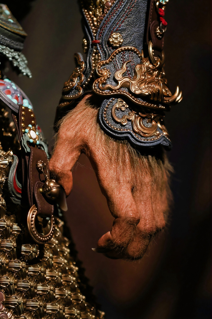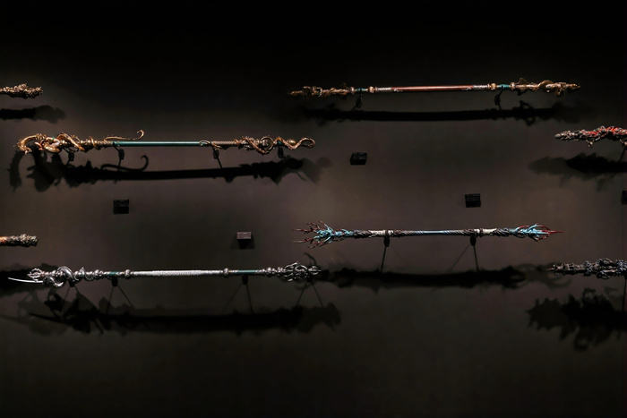 以游戏《黑神话:悟空》为核心,展览打破数字艺术的虚实壁垒,在实体空间重现游戏中的经典叙事与角色、场景、道具等内容,让观者能近距离欣赏游戏原画与制作细节,探索幕后开发故事。展览由“破顽空”“载群生”“明邪正”“开尘锁”“踏云光”“会元龙”“赌输赢”七个单元组成,从直面天命的恢弘意境,到人、神、妖、魔的细腻塑造,游戏制作团队对中国传统文化的深度挖掘皆可得见。