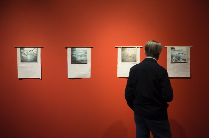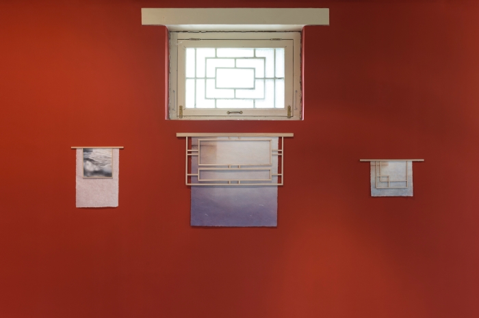 此外,展览中还有4张《春日初绽》系列摄影作品。白然拍下了北京公园里常见玉兰花,又以木条和手工纸制作出好像窗户和窗帘的“前景”。微风拂过时,玉兰花才得以显现真容。在北京的驻地,不仅给白然带来了新的创作灵感,也为她提供了新的创作载体——传统的手工纸被运用在一系列作品中,带来了神秘和惊喜。