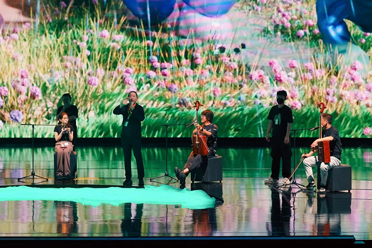 《呼麦·飘渺》节目中,呼麦表演者之一——演员蒙根感叹道:“舞台上的纱在空中飘动,就像我们蒙古人的哈达在礼敬天地!”这一视觉意象与音响设计相得益彰,共同编织出一幅声画交融的草原画卷。
