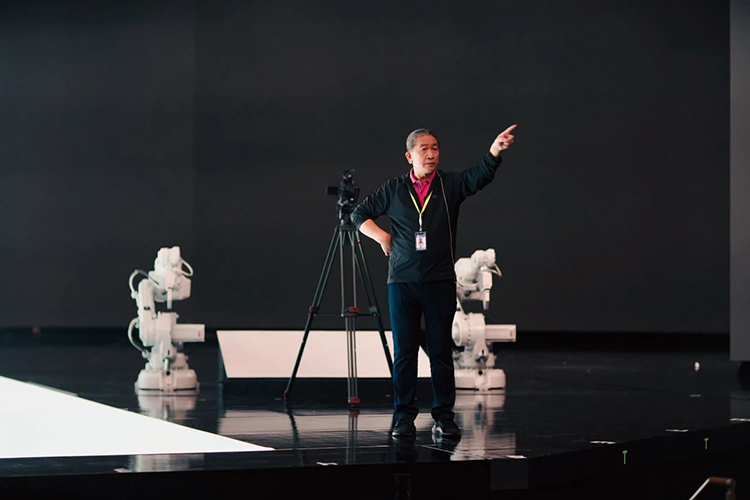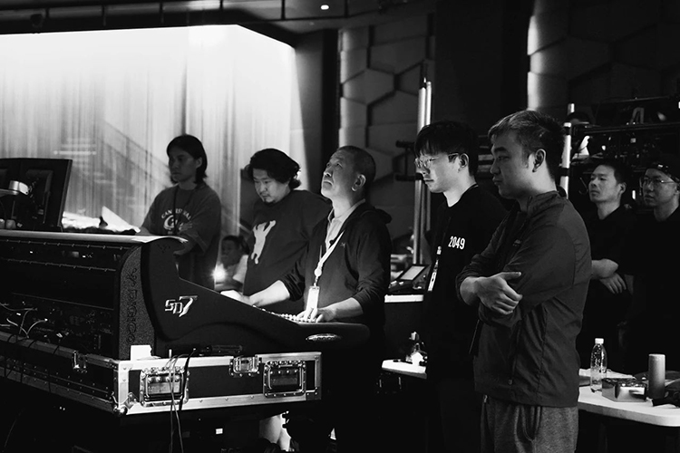 《澳门2049》的筹备过程中,声音设计经历了多轮调整。最初团队计划使用剧场原有的双声道(立体声)扩声系统,2023年12月金少刚根据剧场和节目需求,向导演组提出改用环绕声的混音方式并被采纳。2024年8月整台演出在北京怀柔影视基地进行了1:1彩排,团队对音场效果进行了多次调整,同期出品人何超琼女士以其卓越的艺术眼光和对中华文化国际传播的战略考量,决定升级至L-ISA沉浸式音响系统。这一决策彰显了主创团队对声音品质的不妥协态度,也为整个演出奠定了世界级的声学基础。