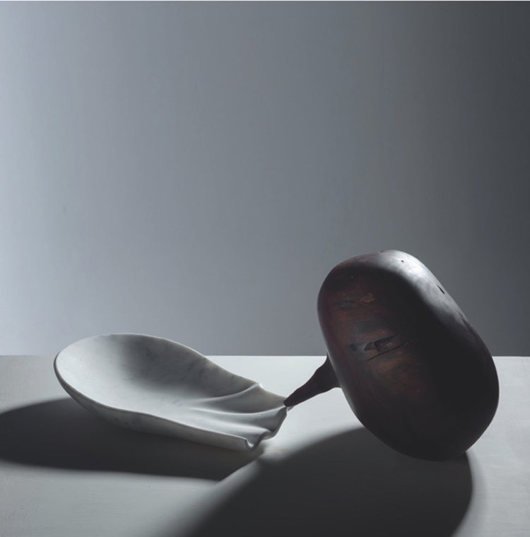 在Lorenzo Vignoli的冷峻大理石与周圆缘Yaman Chua的温润木雕之间,一场关于时间本质的宇宙诗学正以月相为节拍徐徐展开。这对创作者以天体力学为共同语法,在材料对抗中重写时间叙事。Lorenzo Vignoli的将大理石解构为地质纪年的横截面,层叠的矿物沉积如被压缩的时光琥珀;周圆缘YamanChuau嵌入的薄木构件以木纹的裂变瞬间与大理石的冷凝轨迹在此形成量子纠缠,恰似海德格尔所言“时间并非流逝,而是绽放”。当观众绕行这件装置时,木质“月影”随角度位移在大理石表面投下变幻的光痕,物理性的时空弯曲由此升华为诗意的存在之思。