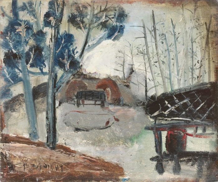 赵无极,《无题(寺庙和坟墓)》,1947年,布面油画,45.5 × 55 cm,杭州,中国美术学院美术馆藏,弗朗索瓦兹·马尔凯-赵捐赠,2024年,图片来源:Dennis Bouchard