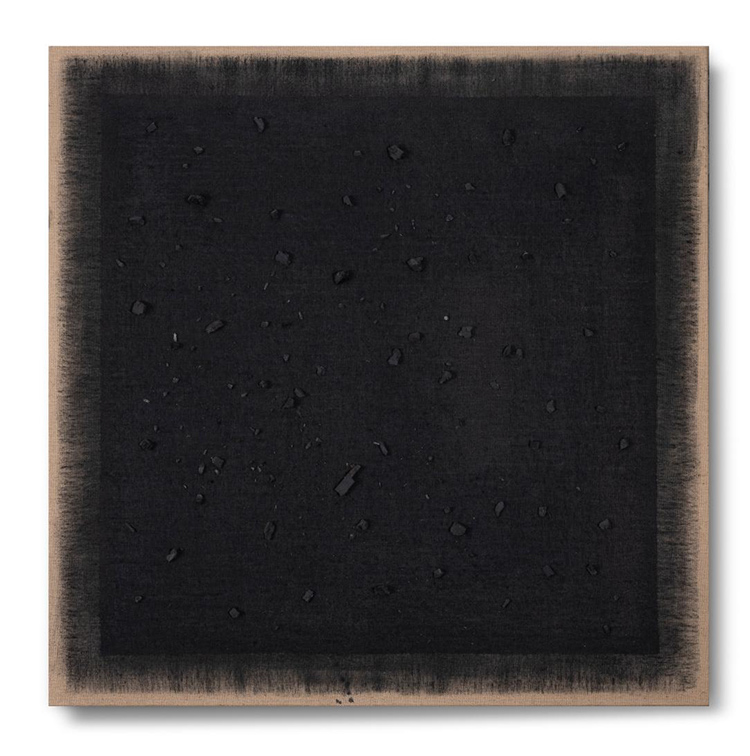 梅法钗,《烬》系列18,2024,亚麻布、炭渣、胶,100×100cm© 梅法钗工作室,布里诗画廊