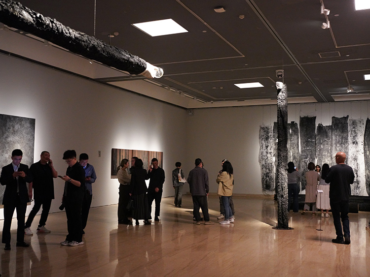 近日,布里诗画廊艺术家梅法钗个展《炭骨》在中国美术馆开幕。展出了36件梅法钗的绘画、装置艺术作品,展览将展至4月22日。