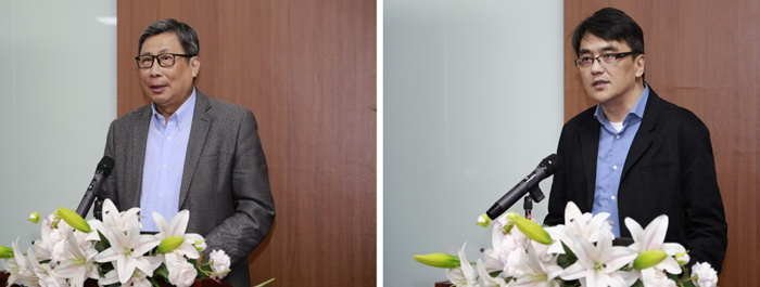 丛书主编复旦大学孟建教授(左)与南京大学出版社副总编辑祁林教授(右)讲话