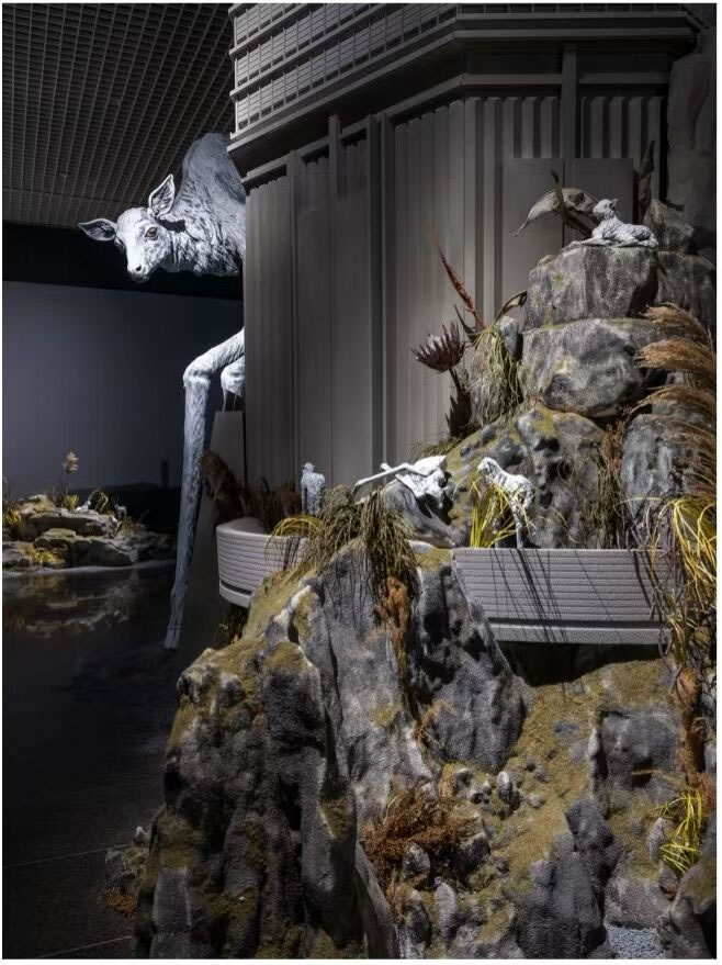 通过变异动物、建筑废墟和场景的并置,艺术家所聚焦的自然与文明的矛盾关系,就以多样式的异化状态呈现,这些异化生物介乎现实与虚构之间,它们像是过去文明的残留,也像未来世界的预言。使整个展览带出不是一种简单的二元论思想,背后的焦虑获得了深刻的哲学意味, 能感受到我们与自然、科技、城市之间不稳定的关系。而这样的焦虑本身,更是源自艺术家的成长环境、求学经历以及艺术思想的成熟。