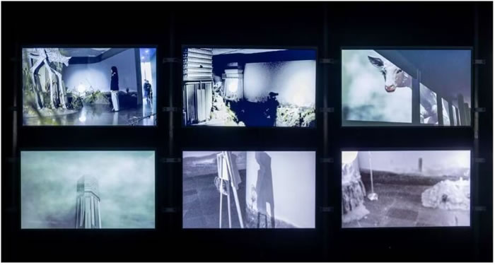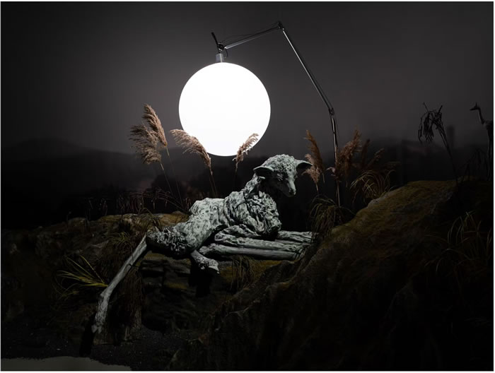 艺术家在理解威尼斯双年展“处处是外人”这个主题的同时,将之与伊塔洛·卡尔维诺的虚构城市概念叠加、交错,并调动多种媒介手段编织出的装置。光线、机械和虚拟手段并置,放大的动物型体在建筑和荒原里彰显出突兀,后半段空间将动物微缩,与前半部分构成矛盾,蕴育出的模糊、忧伤末日景象,透过身份错位与空间异化促使观众获对当代社会的末日焦虑有充足的体验。