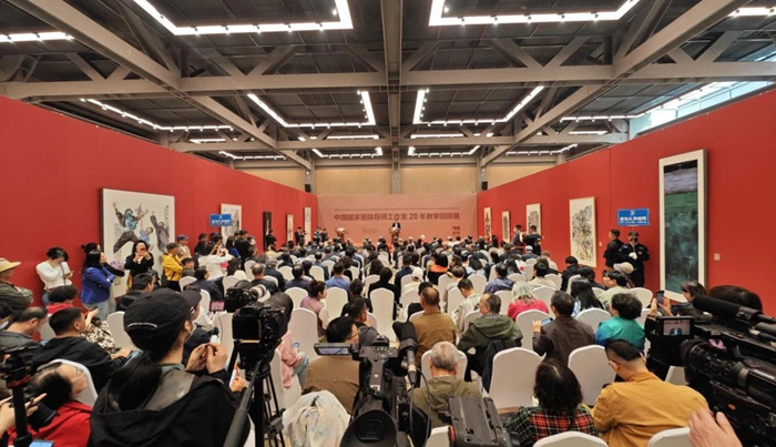 燕东升在致辞中对中国国家画院的教学工作表示肯定。他谈道:“20年来,中国国家画院的教学成果斐然,始终扎根于中华优秀传统文化的深厚土壤,秉持‘因材施教、高端起步、技道并进’的理念,融汇传统师承与现代教育精华,形成了独具特色的教学体系,在业内乃至社会各界享有良好声誉。我们始终站稳政治立场,把好意识形态关。我们始终坚持‘以人为本’,将人格修养与艺术培育并重,注重导师与学员间的深度交流,强调作品的人文内涵与艺术独创性,致力于培养德才兼备、德艺双馨的艺术人才。这种教学模式,不仅传承了中华传统美学精神,更契合了新时代党对文艺工作者‘培根铸魂、守正创新’的要求。此次教学回顾展不仅是中国国家画院矢志不渝、砥砺奋进的教学培训工作的历程展示,更是教学培训成果的生动写照。中国国家画院将继续坚守初心使命、深化教学改革、优化课程设置、加强师资队伍建设,培养更多艺术人才,为美术事业的繁荣发展贡献智慧和力量!”
