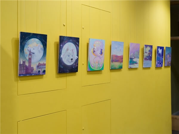 这些图像既私密又原型化。她以柔和而有节奏的笔触描绘出介于记忆与魔幻现实之间的画面。这些符号源于她个人的离散经验,却并不局限于个体隐喻,而是构成了一套关于距离、情感与归返的视觉语法。