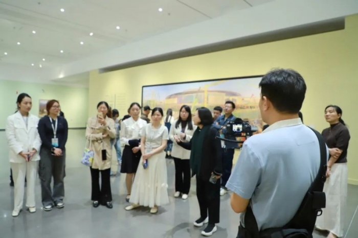 仪式结束后,中国美术馆研究部主任、“江山·人民”展览策展人裔萼为观众导览(全程直播)