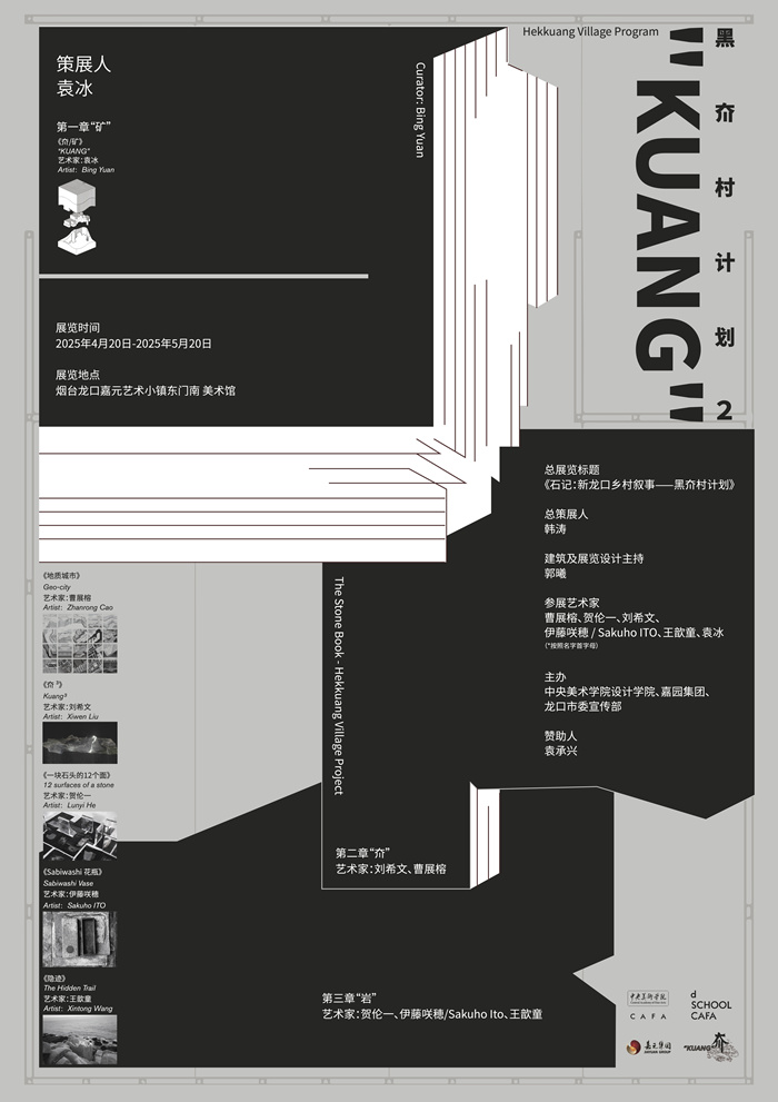 本次展览由中央美术学院设计学院师生共同策划,在龙口市政府、地方企业的大力支持下,携手20余位国内外艺术家开展实践,汇聚了教育、艺术、技术与政策多个维度的力量,以黑夼村采石场为研究对象,探讨龙口乡村需要什么样的叙事?乡村生态为主体视角的叙事是怎样的?以及我们作为被叙事者和听众,如何倾听采石场的声音?乡村的声音?以集体策展的方式回应乡村的呼唤,回应当下乡村发展中所面临的文化记忆、技术转型与空间更新等问题。因此,整个展览基于乡村“图像、剖面、声音、全息、身体”几种视角形成一场五位策展人基于乡村现实的集体共构实验。