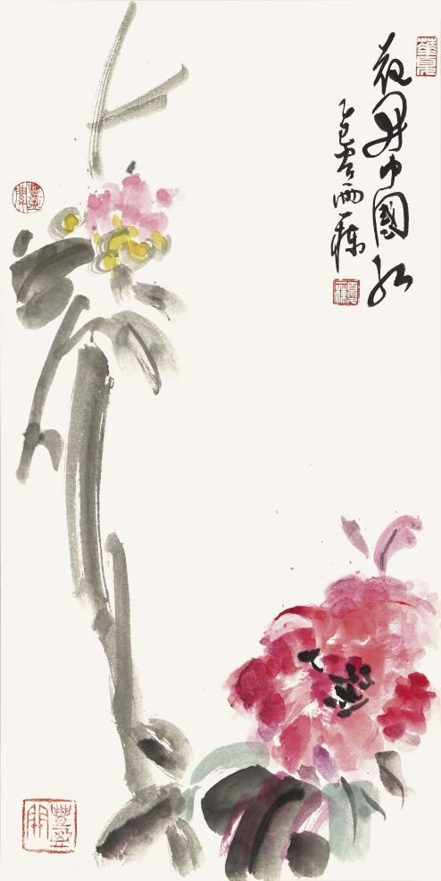 所谓写意是指运用简练的笔墨,书写象外之意而营造深远的意境。大写意之“大”,也有着丰富的哲学意涵。老子曰:“大象无形,大音希声。”在大写意花鸟画中,表现为运用精简而有意味的线条勾勒一花一草的自然意趣,同时芥子纳须弥,又可赅括宇宙之大和天地之美,即所谓“一花一世界,一叶一菩提”是也。