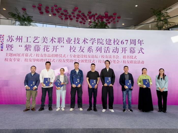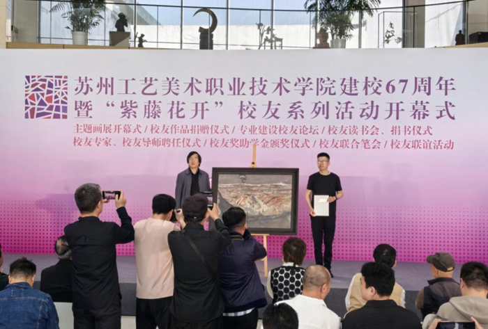 4月28日上午9点,“万里送行舟——张锐油画作品展”在苏州工艺美术职业技术学院美术馆开幕,本次展览为苏州工艺美术职业技术学院建校67周年暨“紫藤花开”校友系列活动之一。开幕式上同时还举行了张锐作品捐赠及苏工艺“专业建设专家”聘书颁发等仪式。