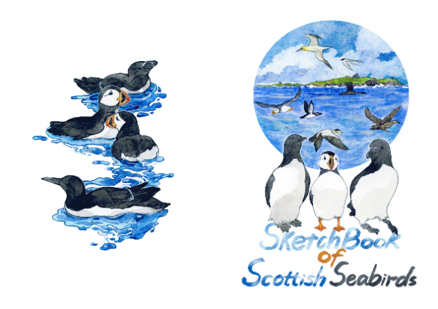 这一系列作品突破了传统动物插画的静态模式,通过大量野外写生与局部场景构建,呈现出海鸟集群、育雏、俯冲、浮游等日常的生存状态,在保持水彩手法特有的松动与层次之余,冬六运用结构化的构图,赋予图像强烈的节奏感和张力。苏格兰的冷色调也成为她调色板上的主旋律,深蓝、灰绿、赭石交织出北半球高维地区湿润、开阔、充满呼吸的自然气息。与此同时,爱丁堡古老建筑的形态、石材纹理与城市中高饱和的色彩系统也在悄然塑造她的造型语言,使她的动物图像同时具备建筑式的坚实感与文化层的隐喻。