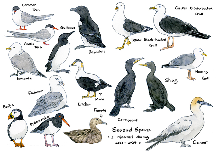 冬六的艺术创作深深扎根于亲身的观察与体验。过去三年,她在英国爱丁堡生活,得益于良好的动物保护氛围,有着很多观察野生动物的机会,并以此逐渐建立起以真实的野生动物行为为核心的视觉研究方法。她曾提到,“五月岛的风、海鸟、季节变幻都教会我什么是‘真实的生命力’。”在爱丁堡期间,冬六对苏格兰特有的海鸟种群产生了浓厚兴趣,尤其被自然保护区中栖息的塘鹅、海鹦、燕鸥等海鸟的群居行为和季节迁徙规律所震撼,由此开启了名为《Scottish Seabirds》的创作系列。
