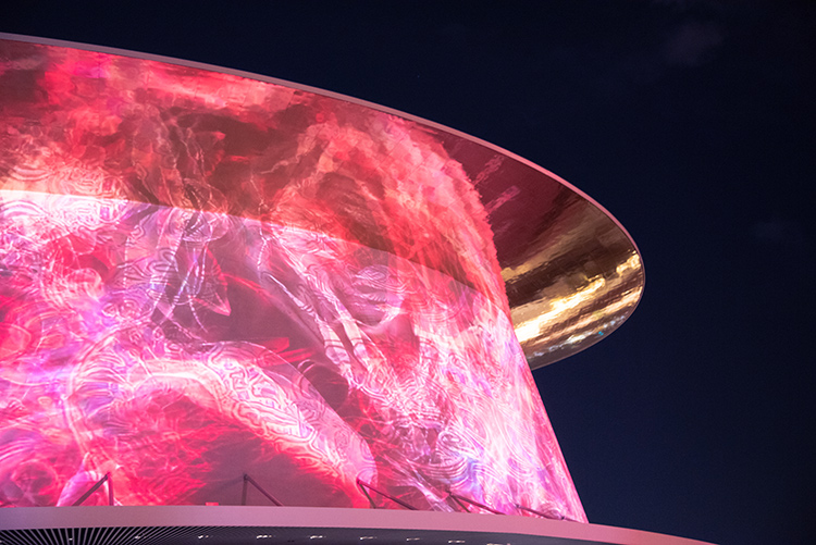 在创作过程中,LEOW坚持以原创音乐为起点,强调声音与视觉结构的联动,让作品如生命体般生长,使光影不仅覆盖建筑表面,更融入建筑感知之中。
